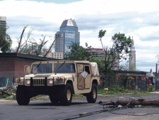 | |  | | | Hummers driven by the National Guard patrolled parts of West Springfield as downed power lines littered the streets. |